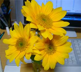 なんだかぱーっと明るくなれるような色が欲しくて。赤いバラとか、ピンクのカーネーションとかもあったんですが、この黄色のひまわりに惹かれてしまいました。